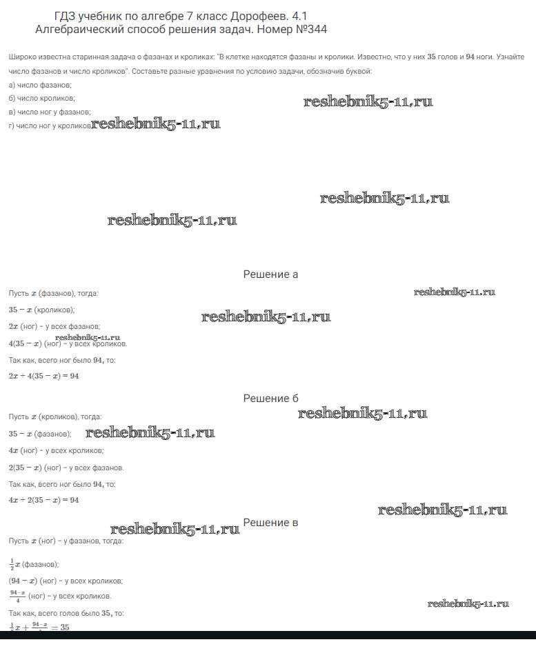 Готовая домашняя работа с ответами по Алгебре за 7 класс Дорофеев, Суворова, Бунимович Учебник Академический школьный учебник Просвещение 2020 ФГОС - Упражнения 344
