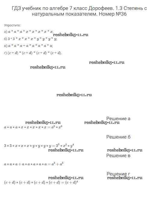 Готовая домашняя работа с ответами по Алгебре за 7 класс Дорофеев, Суворова, Бунимович Учебник Академический школьный учебник Просвещение 2020 ФГОС - Упражнения 36