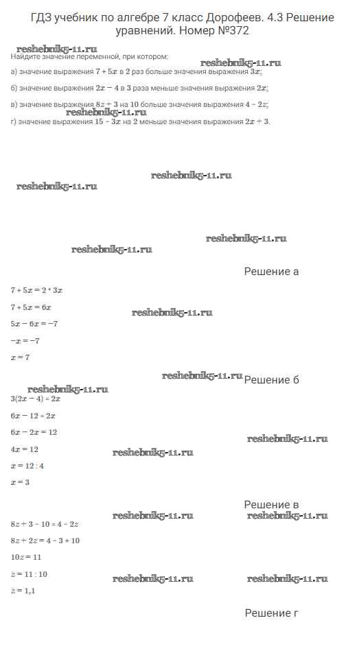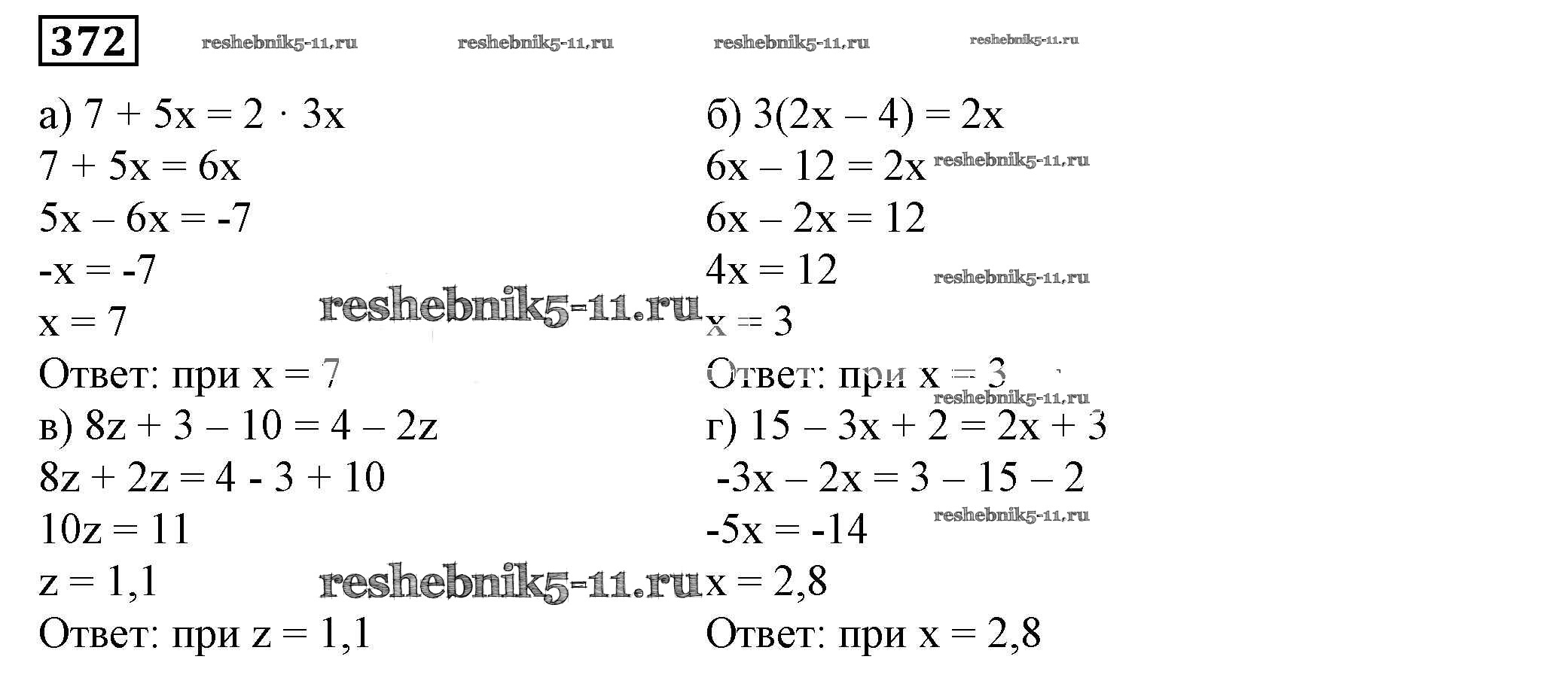 Готовая домашняя работа с ответами по Алгебре за 7 класс Дорофеев, Суворова, Бунимович Учебник Академический школьный учебник Просвещение 2020 ФГОС - Упражнения 372