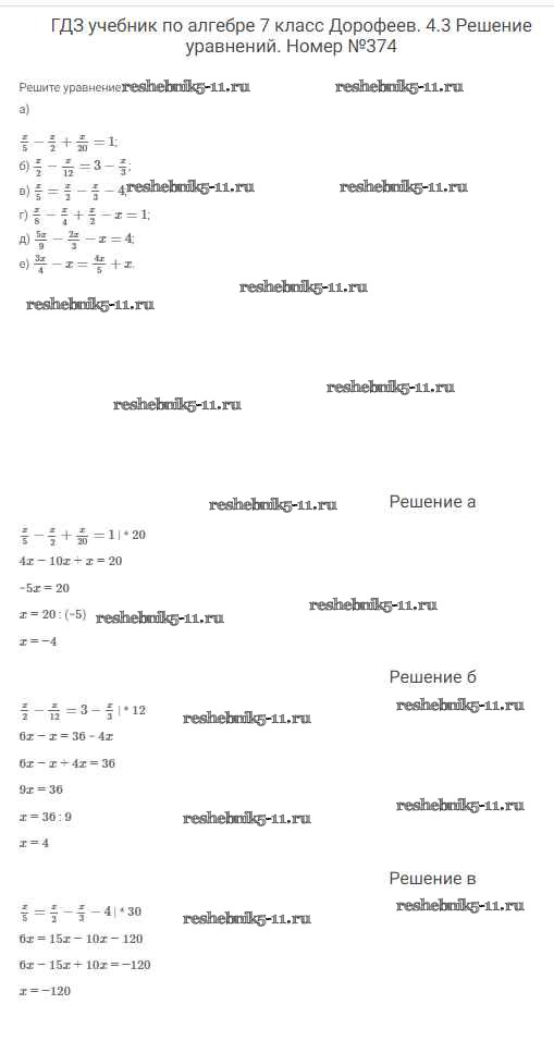 Готовая домашняя работа с ответами по Алгебре за 7 класс Дорофеев, Суворова, Бунимович Учебник Академический школьный учебник Просвещение 2020 ФГОС - Упражнения 374