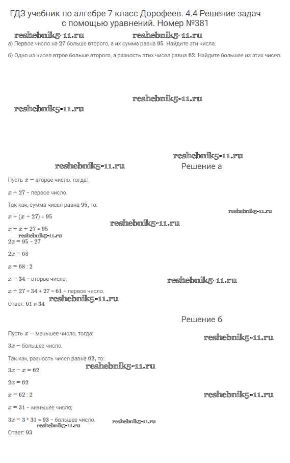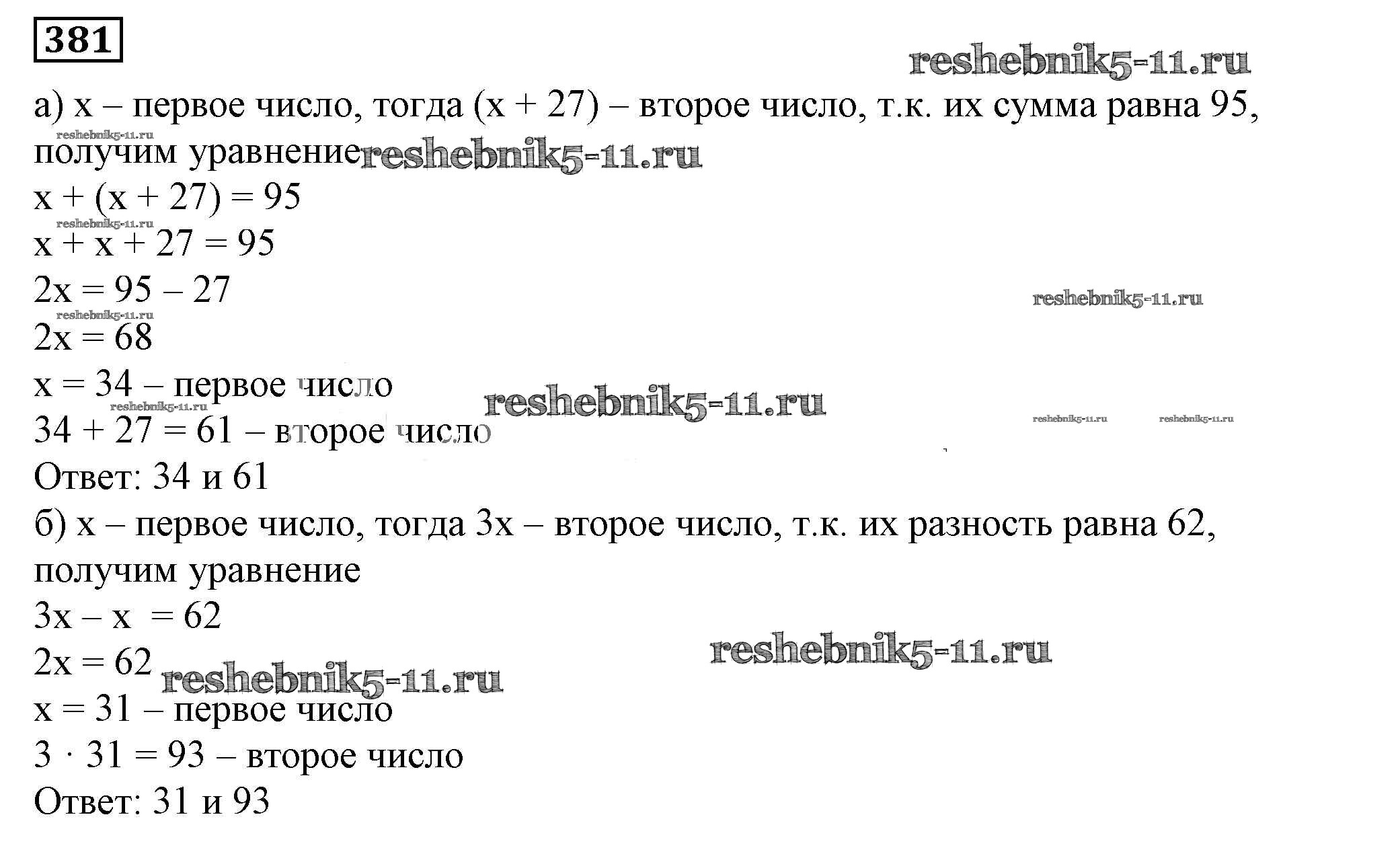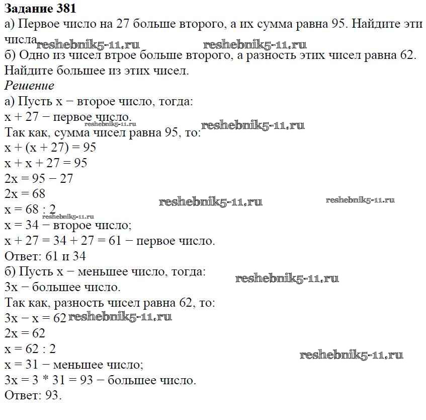 Готовая домашняя работа с ответами по Алгебре за 7 класс Дорофеев, Суворова, Бунимович Учебник Академический школьный учебник Просвещение 2020 ФГОС - Упражнения 381
