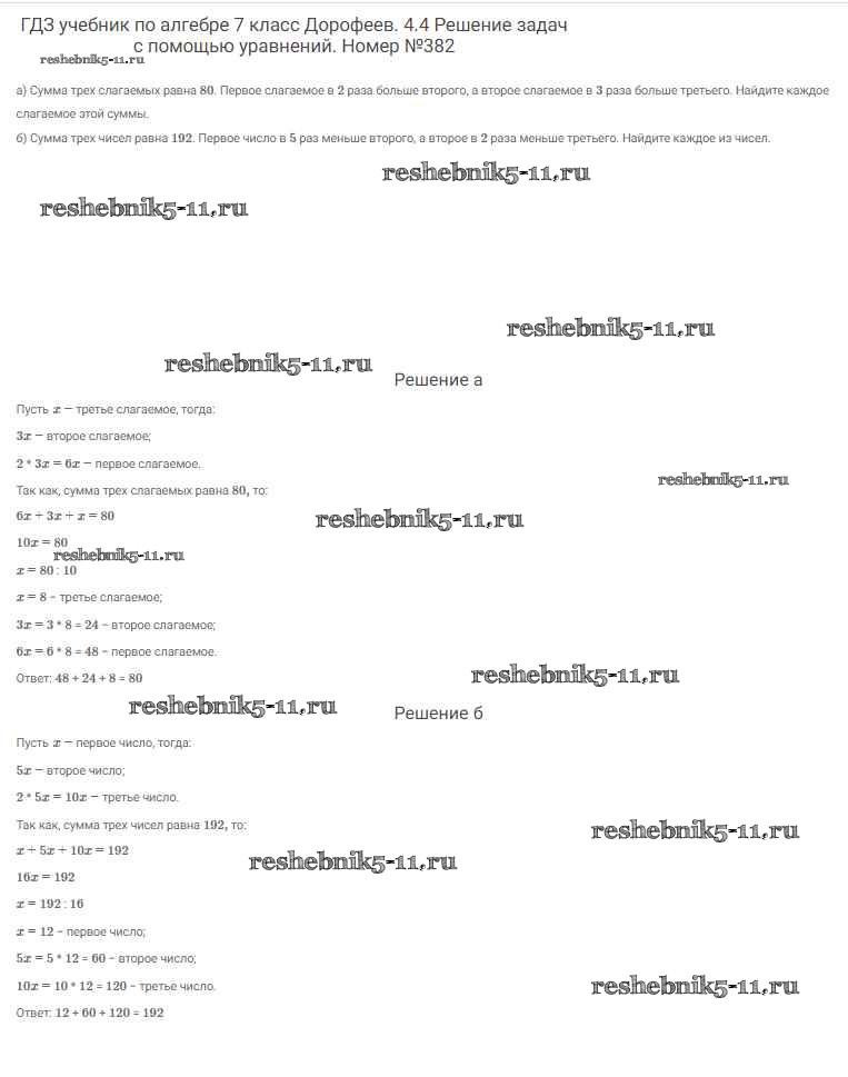 Готовая домашняя работа с ответами по Алгебре за 7 класс Дорофеев, Суворова, Бунимович Учебник Академический школьный учебник Просвещение 2020 ФГОС - Упражнения 382