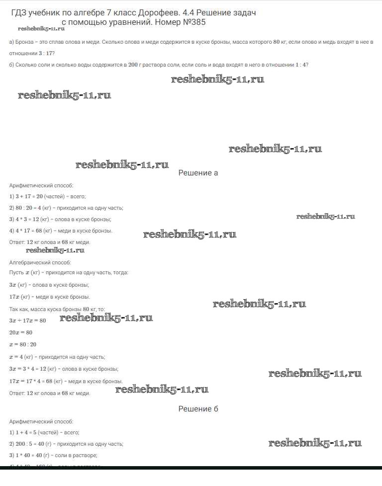 Готовая домашняя работа с ответами по Алгебре за 7 класс Дорофеев, Суворова, Бунимович Учебник Академический школьный учебник Просвещение 2020 ФГОС - Упражнения 385