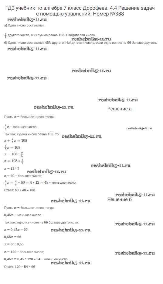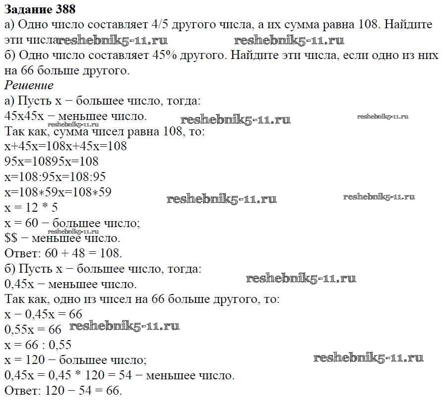 Готовая домашняя работа с ответами по Алгебре за 7 класс Дорофеев, Суворова, Бунимович Учебник Академический школьный учебник Просвещение 2020 ФГОС - Упражнения 388