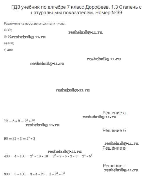 Готовая домашняя работа с ответами по Алгебре за 7 класс Дорофеев, Суворова, Бунимович Учебник Академический школьный учебник Просвещение 2020 ФГОС - Упражнения 39