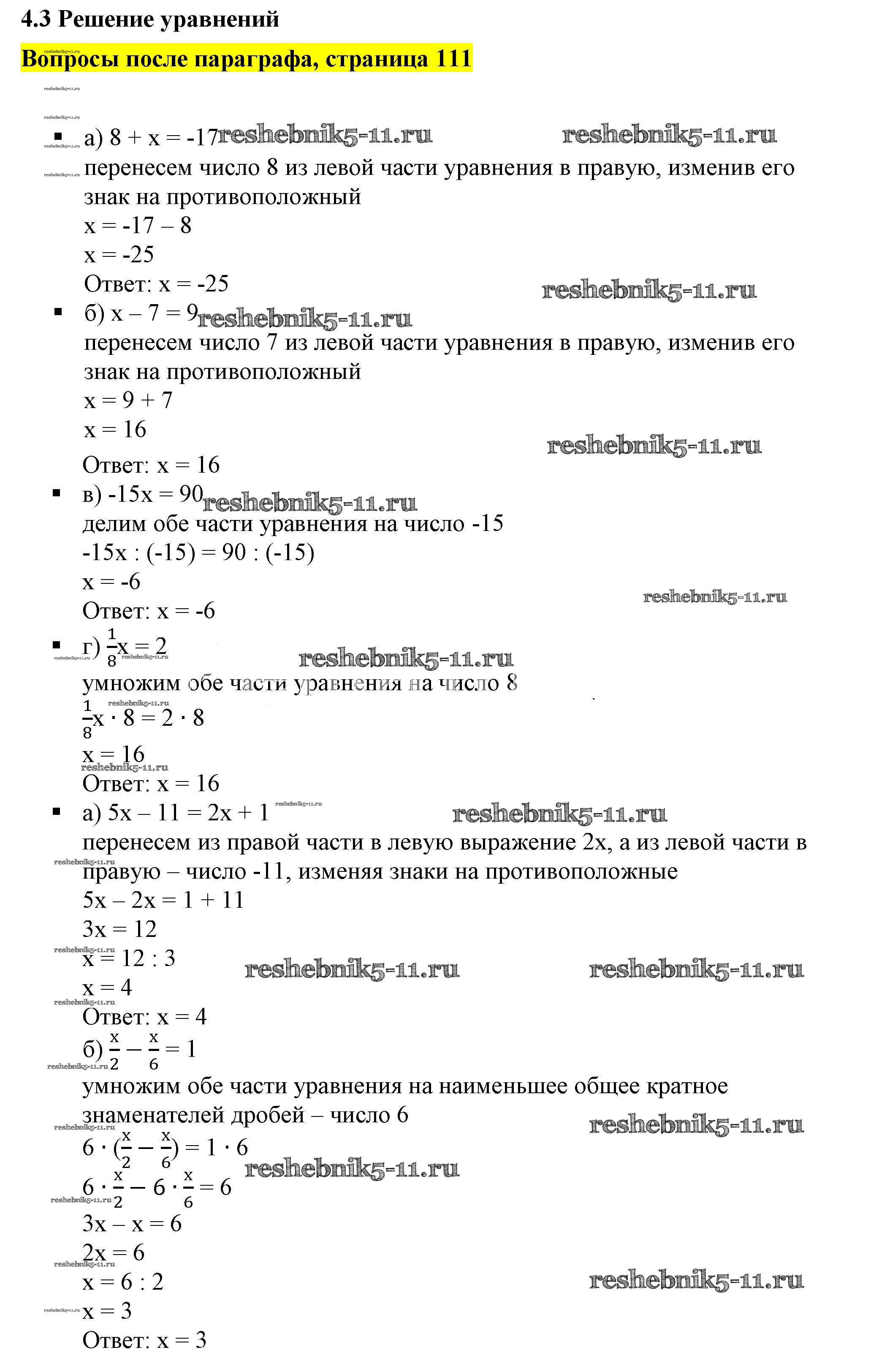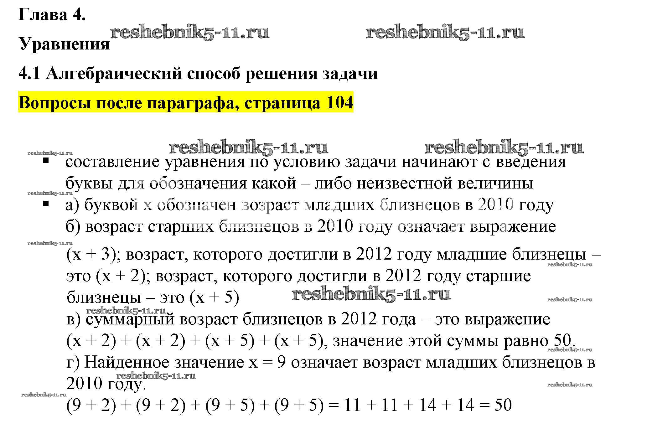 Готовая домашняя работа с ответами по Алгебре за 7 класс Дорофеев, Суворова, Бунимович Учебник Академический школьный учебник Просвещение 2020 ФГОС - Вопросы после параграфа Глава 4