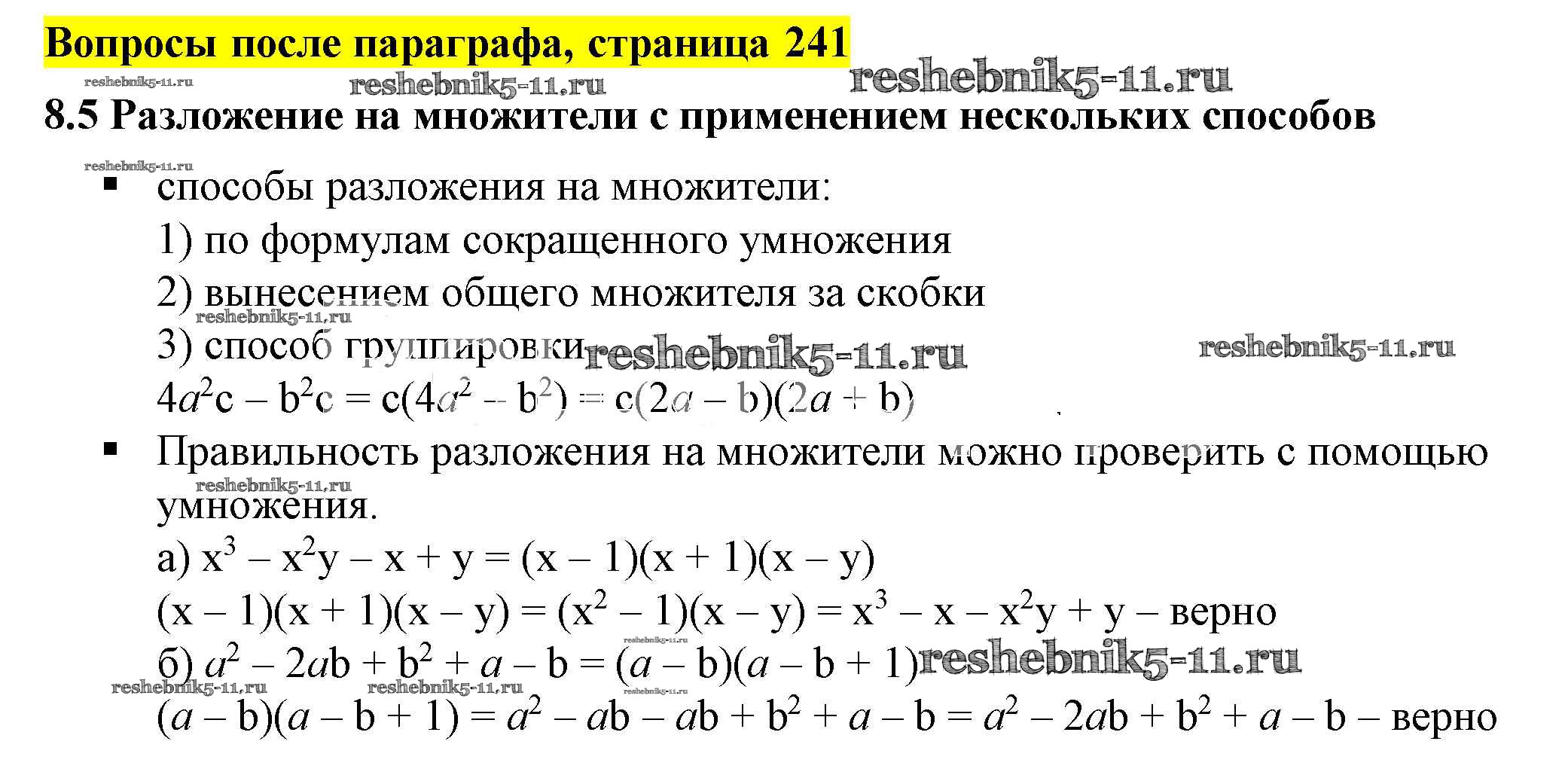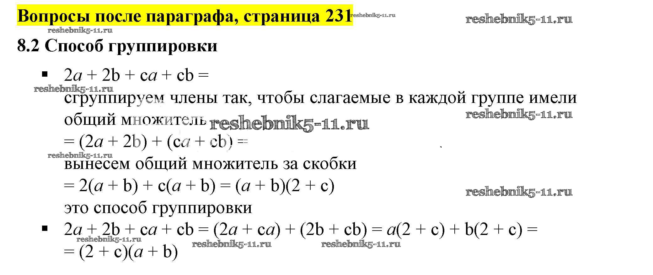 Готовая домашняя работа с ответами по Алгебре за 7 класс Дорофеев, Суворова, Бунимович Учебник Академический школьный учебник Просвещение 2020 ФГОС - Вопросы после параграфа Глава 8