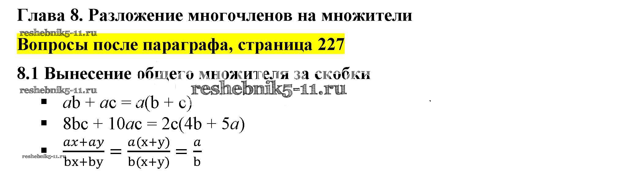 Алгебра за 7 класс Дорофеев Учебник Академический школьный учебник Просвещение вопрос после параграфа Глава 8