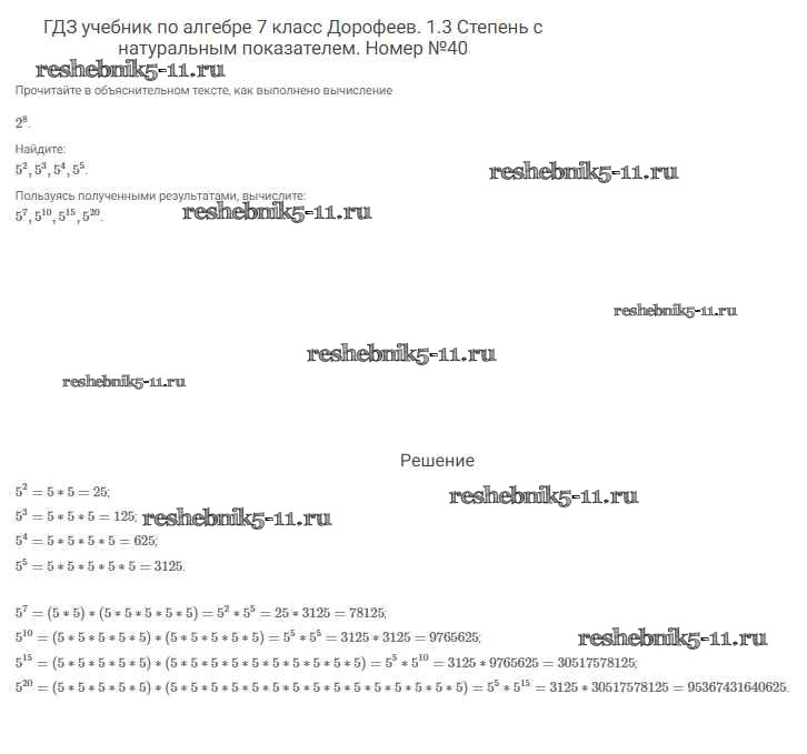 Готовая домашняя работа с ответами по Алгебре за 7 класс Дорофеев, Суворова, Бунимович Учебник Академический школьный учебник Просвещение 2020 ФГОС - Упражнения 40