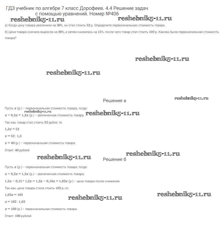 Алгебра за 7 класс Дорофеев Учебник Академический школьный учебник Просвещение упражнение 406