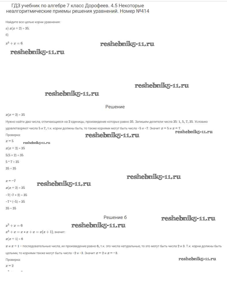 Готовая домашняя работа с ответами по Алгебре за 7 класс Дорофеев, Суворова, Бунимович Учебник Академический школьный учебник Просвещение 2020 ФГОС - Упражнения 414