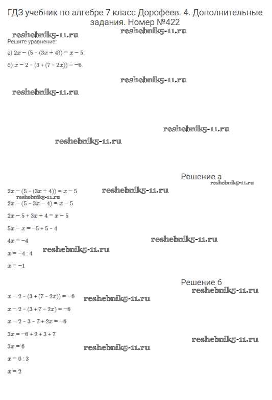 Готовая домашняя работа с ответами по Алгебре за 7 класс Дорофеев, Суворова, Бунимович Учебник Академический школьный учебник Просвещение 2020 ФГОС - Упражнения 422