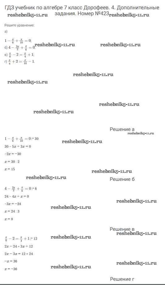 Готовая домашняя работа с ответами по Алгебре за 7 класс Дорофеев, Суворова, Бунимович Учебник Академический школьный учебник Просвещение 2020 ФГОС - Упражнения 423
