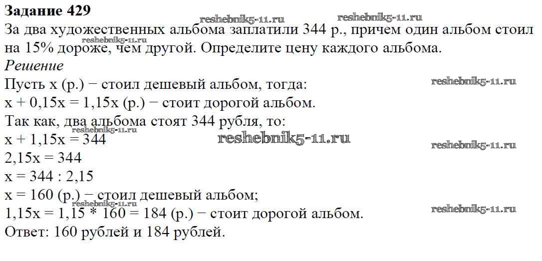 Готовая домашняя работа с ответами по Алгебре за 7 класс Дорофеев, Суворова, Бунимович Учебник Академический школьный учебник Просвещение 2020 ФГОС - Упражнения 429