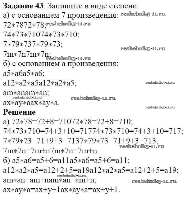 Готовая домашняя работа с ответами по Алгебре за 7 класс Дорофеев, Суворова, Бунимович Учебник Академический школьный учебник Просвещение 2020 ФГОС - Упражнения 43