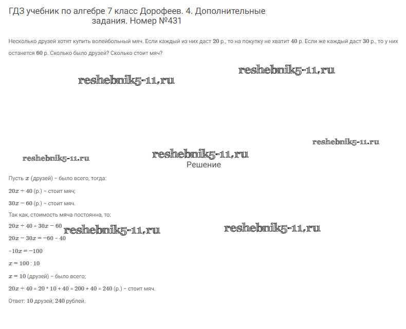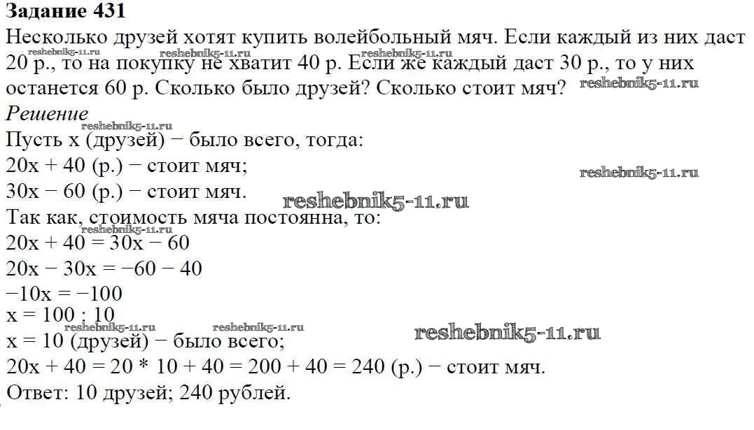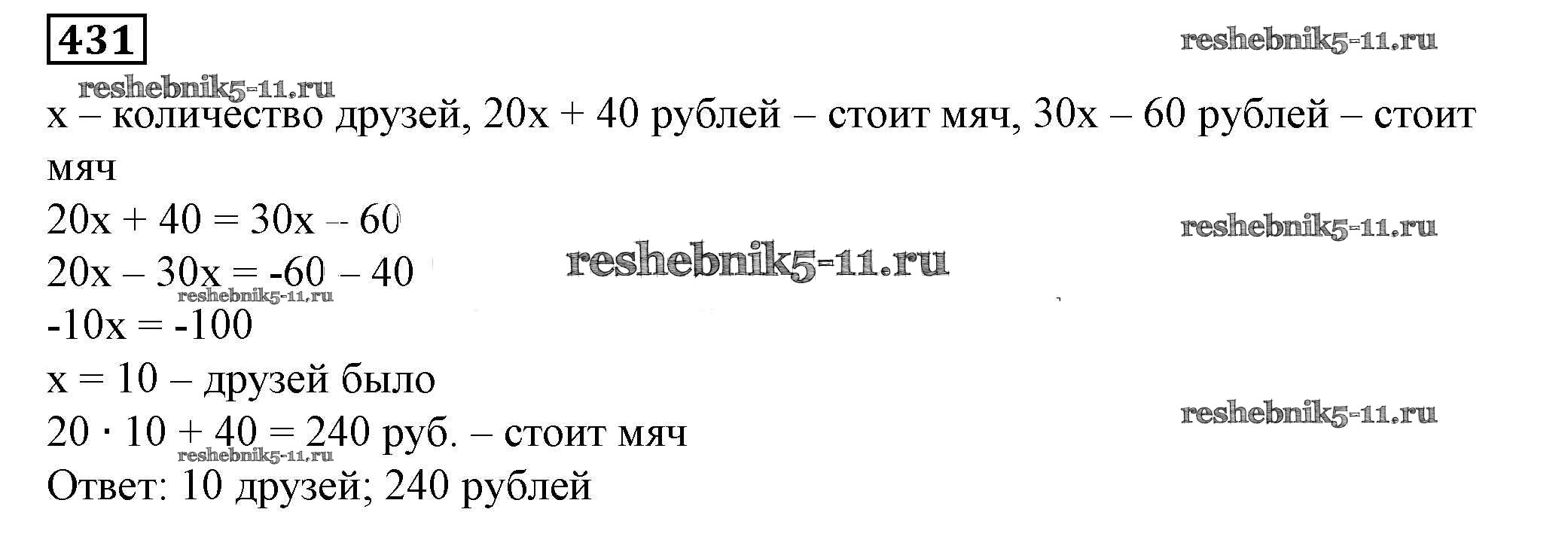 Готовая домашняя работа с ответами по Алгебре за 7 класс Дорофеев, Суворова, Бунимович Учебник Академический школьный учебник Просвещение 2020 ФГОС - Упражнения 431