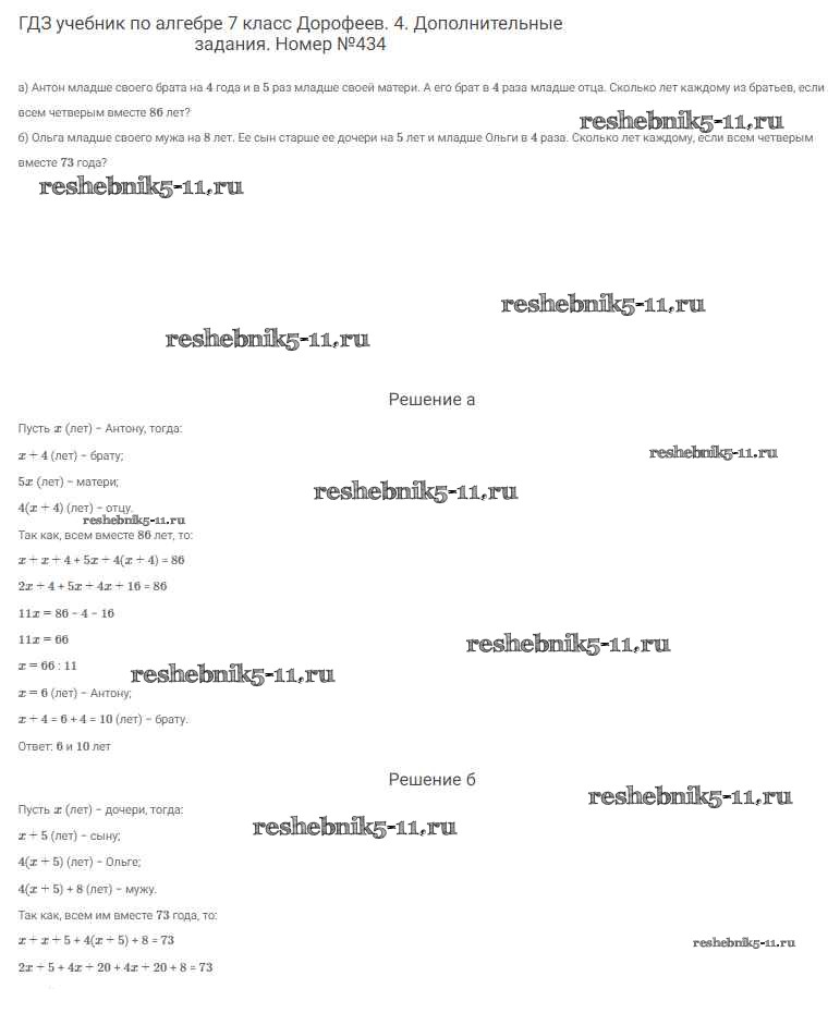 Готовая домашняя работа с ответами по Алгебре за 7 класс Дорофеев, Суворова, Бунимович Учебник Академический школьный учебник Просвещение 2020 ФГОС - Упражнения 434