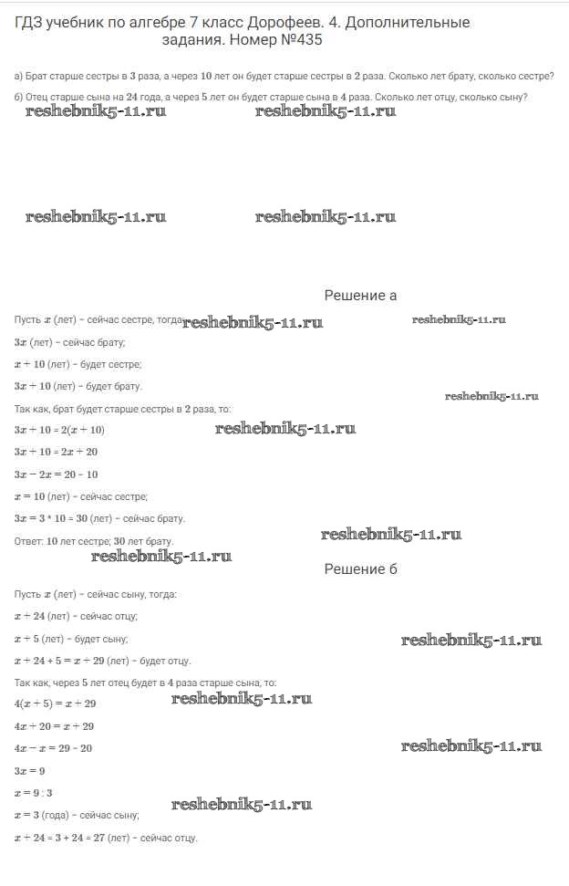 Готовая домашняя работа с ответами по Алгебре за 7 класс Дорофеев, Суворова, Бунимович Учебник Академический школьный учебник Просвещение 2020 ФГОС - Упражнения 435