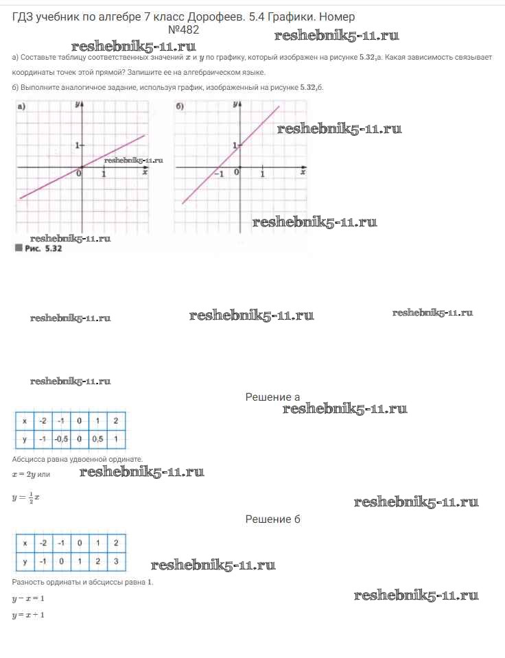Готовая домашняя работа с ответами по Алгебре за 7 класс Дорофеев, Суворова, Бунимович Учебник Академический школьный учебник Просвещение 2020 ФГОС - Упражнения 482