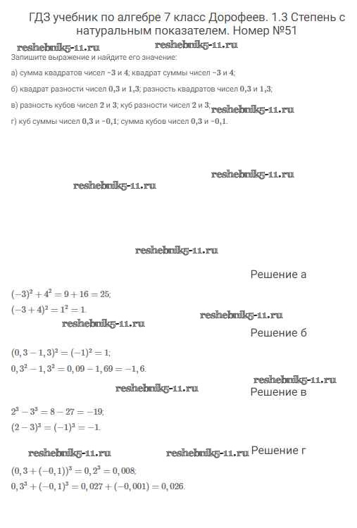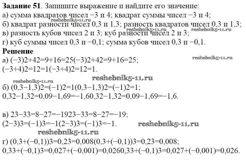 Готовая домашняя работа с ответами по Алгебре за 7 класс Дорофеев, Суворова, Бунимович Учебник Академический школьный учебник Просвещение 2020 ФГОС - Упражнения 51