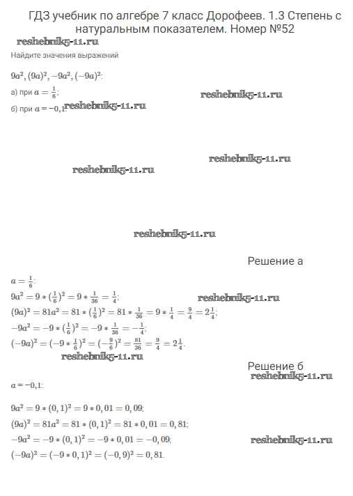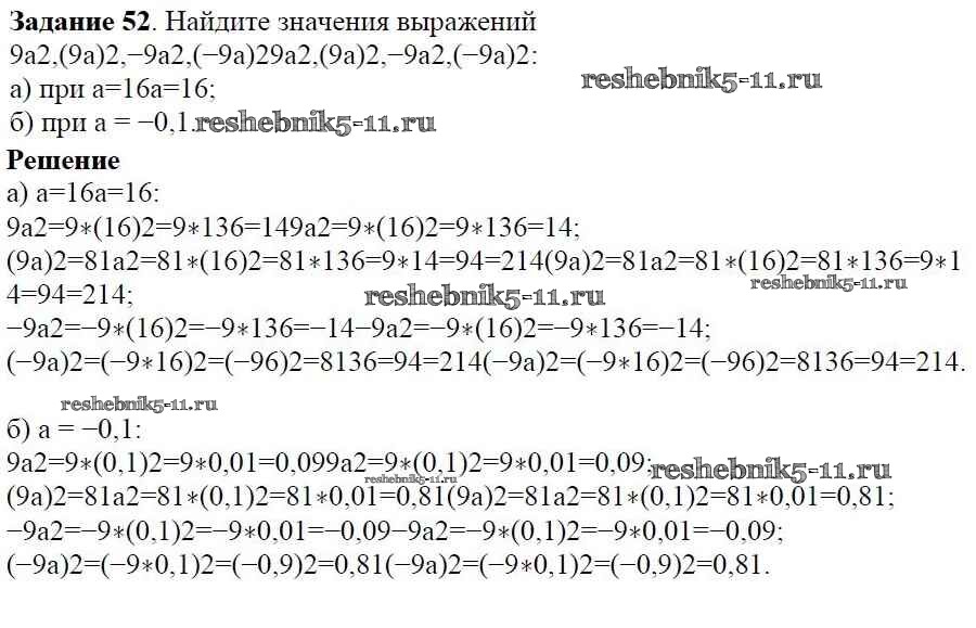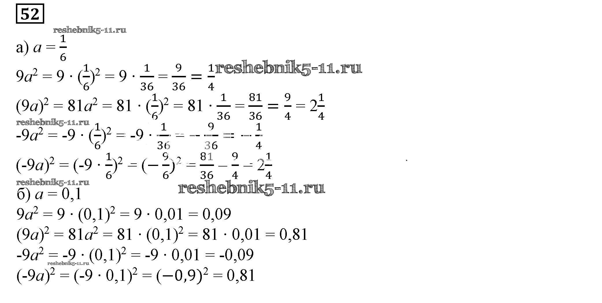 Готовая домашняя работа с ответами по Алгебре за 7 класс Дорофеев, Суворова, Бунимович Учебник Академический школьный учебник Просвещение 2020 ФГОС - Упражнения 52