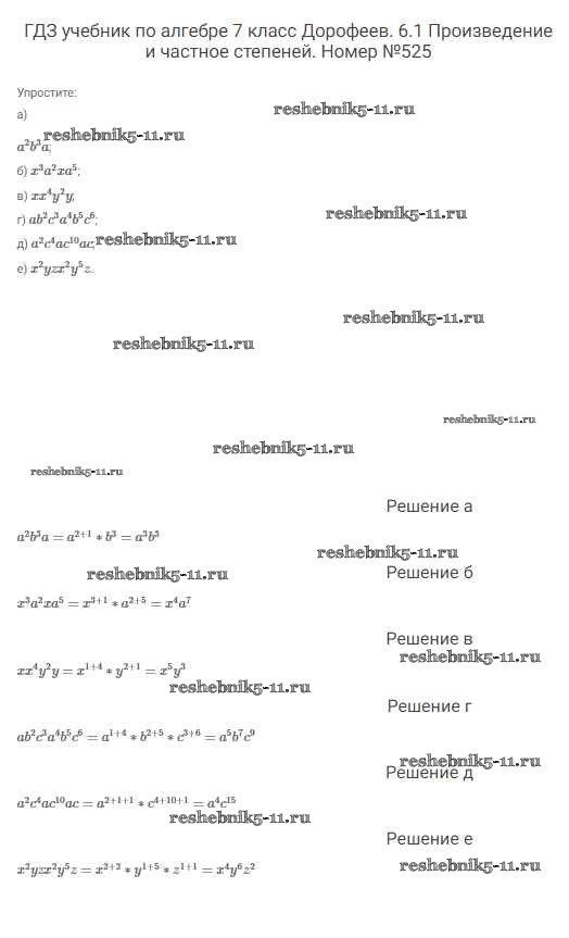 Готовая домашняя работа с ответами по Алгебре за 7 класс Дорофеев, Суворова, Бунимович Учебник Академический школьный учебник Просвещение 2020 ФГОС - Упражнения 525