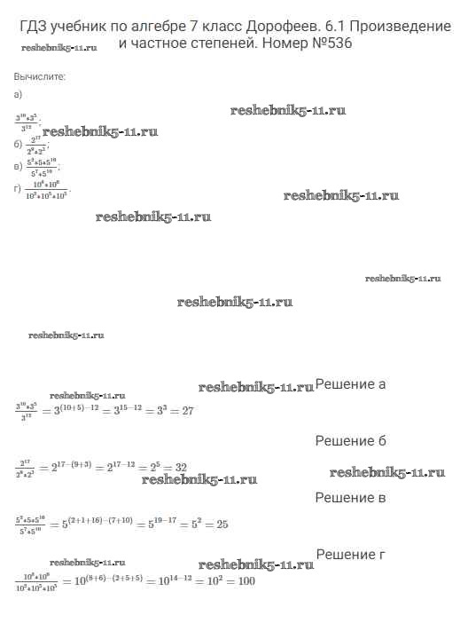 Готовая домашняя работа с ответами по Алгебре за 7 класс Дорофеев, Суворова, Бунимович Учебник Академический школьный учебник Просвещение 2020 ФГОС - Упражнения 536
