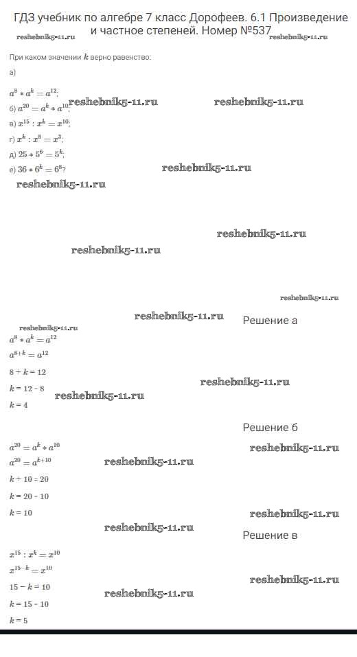 Готовая домашняя работа с ответами по Алгебре за 7 класс Дорофеев, Суворова, Бунимович Учебник Академический школьный учебник Просвещение 2020 ФГОС - Упражнения 537