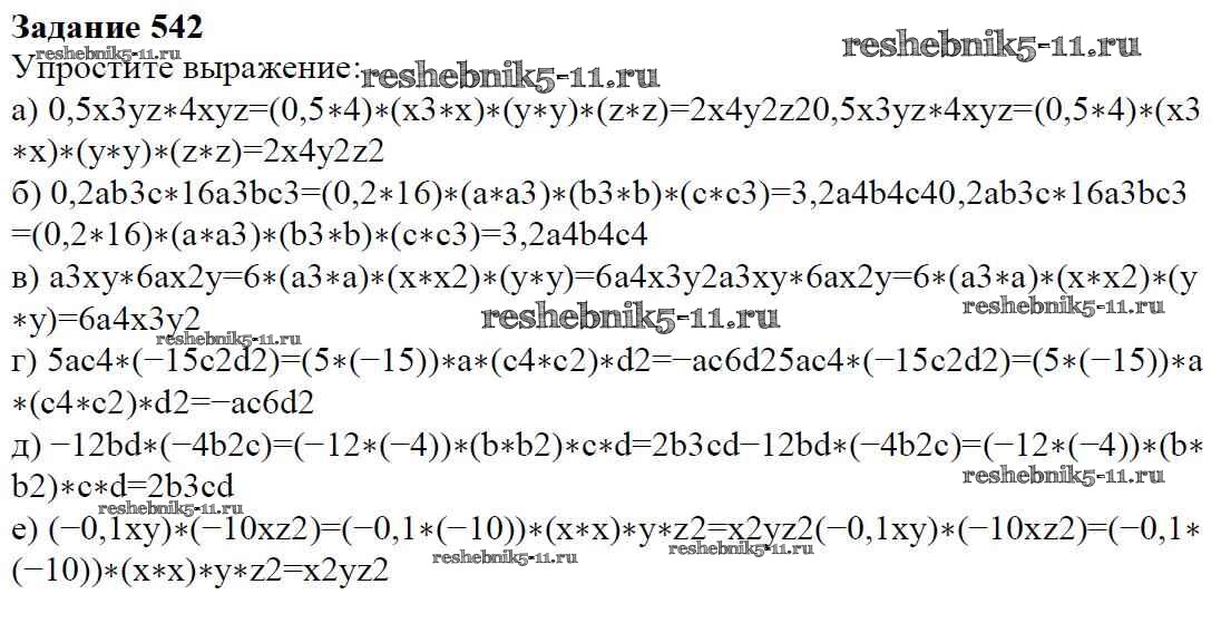 Готовая домашняя работа с ответами по Алгебре за 7 класс Дорофеев, Суворова, Бунимович Учебник Академический школьный учебник Просвещение 2020 ФГОС - Упражнения 542