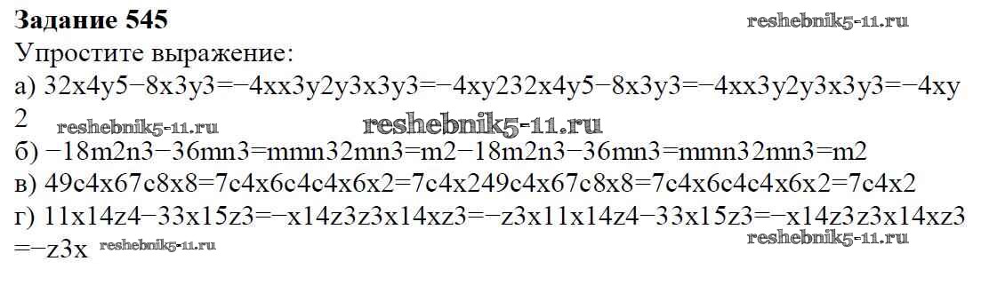 Готовая домашняя работа с ответами по Алгебре за 7 класс Дорофеев, Суворова, Бунимович Учебник Академический школьный учебник Просвещение 2020 ФГОС - Упражнения 545