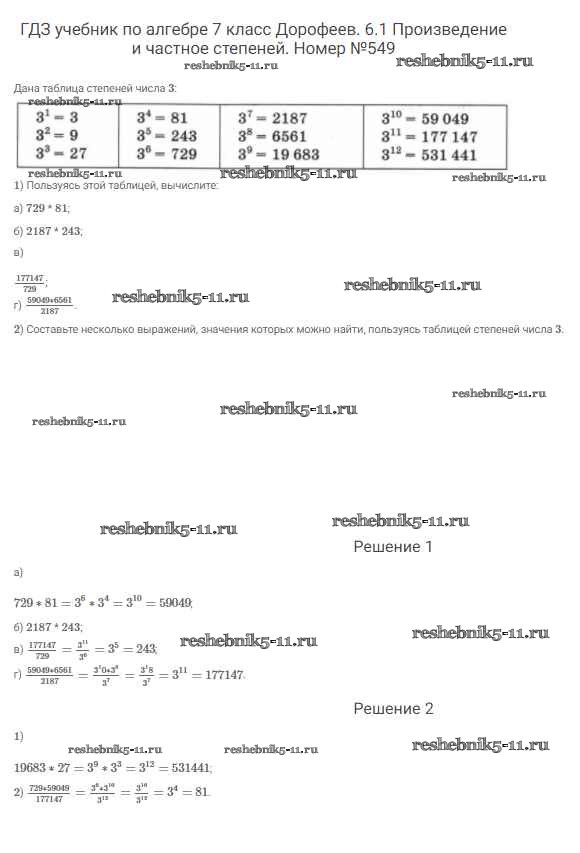 Готовая домашняя работа с ответами по Алгебре за 7 класс Дорофеев, Суворова, Бунимович Учебник Академический школьный учебник Просвещение 2020 ФГОС - Упражнения 549