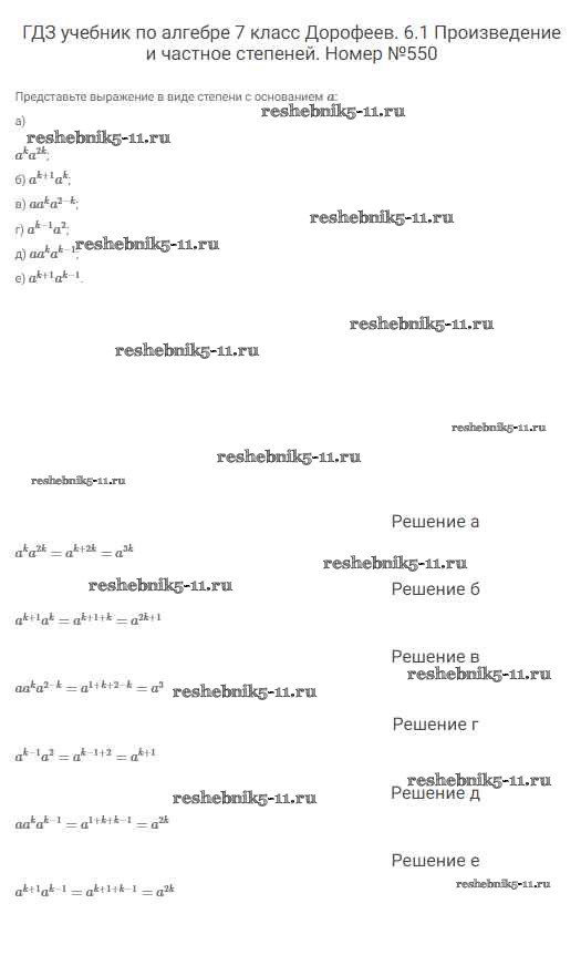 Готовая домашняя работа с ответами по Алгебре за 7 класс Дорофеев, Суворова, Бунимович Учебник Академический школьный учебник Просвещение 2020 ФГОС - Упражнения 550