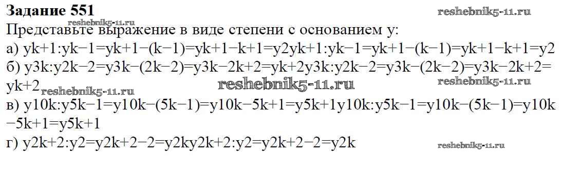 Готовая домашняя работа с ответами по Алгебре за 7 класс Дорофеев, Суворова, Бунимович Учебник Академический школьный учебник Просвещение 2020 ФГОС - Упражнения 551