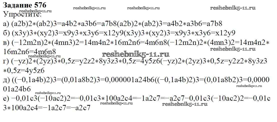 Готовая домашняя работа с ответами по Алгебре за 7 класс Дорофеев, Суворова, Бунимович Учебник Академический школьный учебник Просвещение 2020 ФГОС - Упражнения 576