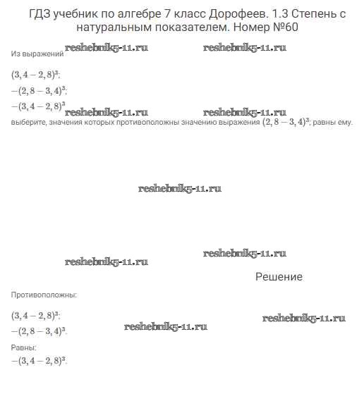 Готовая домашняя работа с ответами по Алгебре за 7 класс Дорофеев, Суворова, Бунимович Учебник Академический школьный учебник Просвещение 2020 ФГОС - Упражнения 60