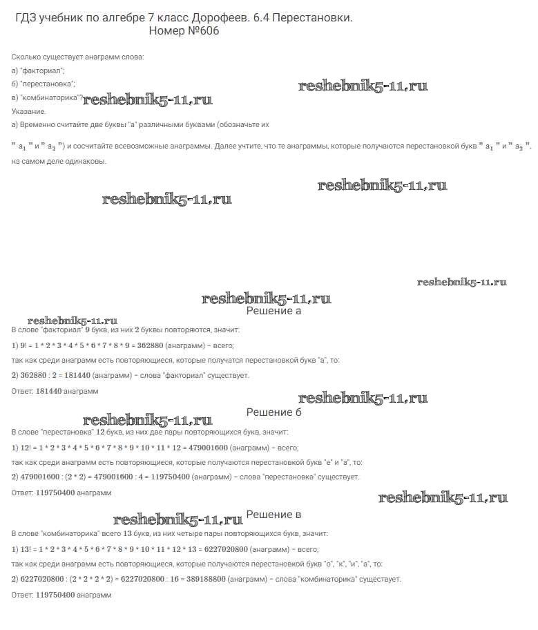 Готовая домашняя работа с ответами по Алгебре за 7 класс Дорофеев, Суворова, Бунимович Учебник Академический школьный учебник Просвещение 2020 ФГОС - Упражнения 606