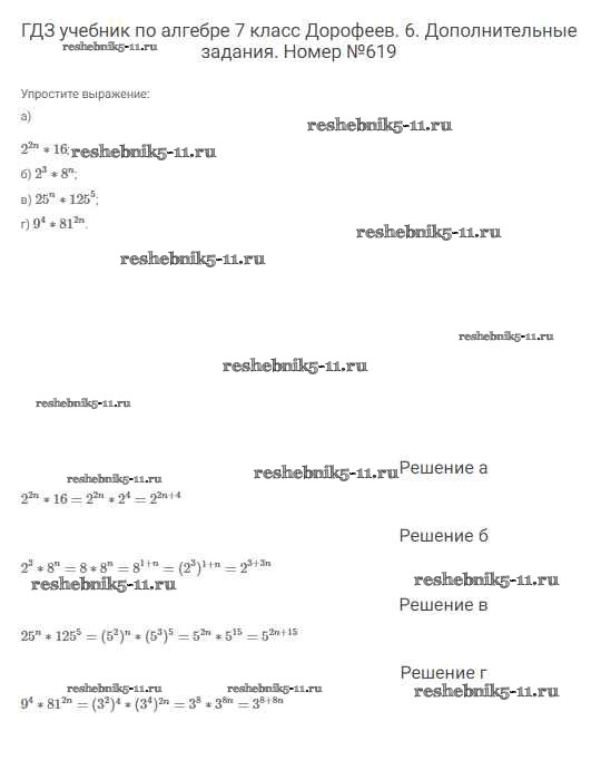 Готовая домашняя работа с ответами по Алгебре за 7 класс Дорофеев, Суворова, Бунимович Учебник Академический школьный учебник Просвещение 2020 ФГОС - Упражнения 619