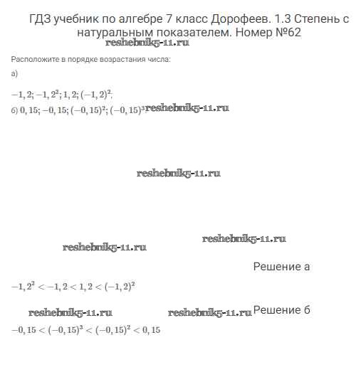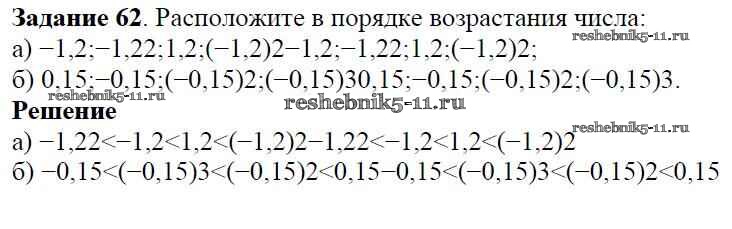 Готовая домашняя работа с ответами по Алгебре за 7 класс Дорофеев, Суворова, Бунимович Учебник Академический школьный учебник Просвещение 2020 ФГОС - Упражнения 62