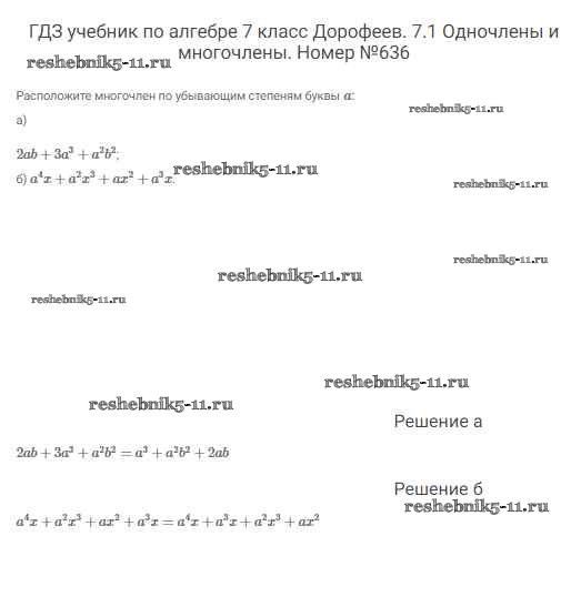 Готовая домашняя работа с ответами по Алгебре за 7 класс Дорофеев, Суворова, Бунимович Учебник Академический школьный учебник Просвещение 2020 ФГОС - Упражнения 636