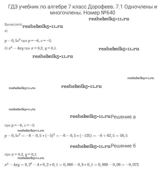 Готовая домашняя работа с ответами по Алгебре за 7 класс Дорофеев, Суворова, Бунимович Учебник Академический школьный учебник Просвещение 2020 ФГОС - Упражнения 640