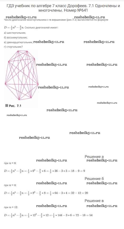 Готовая домашняя работа с ответами по Алгебре за 7 класс Дорофеев, Суворова, Бунимович Учебник Академический школьный учебник Просвещение 2020 ФГОС - Упражнения 641