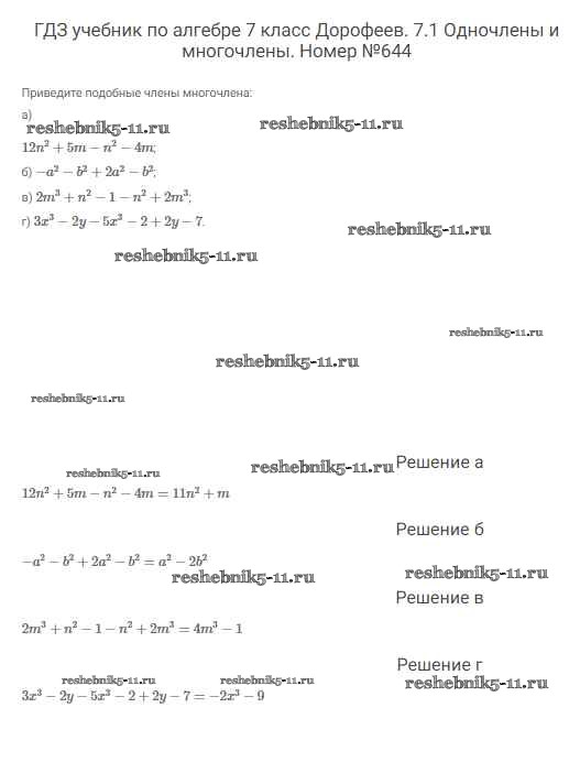 Готовая домашняя работа с ответами по Алгебре за 7 класс Дорофеев, Суворова, Бунимович Учебник Академический школьный учебник Просвещение 2020 ФГОС - Упражнения 644