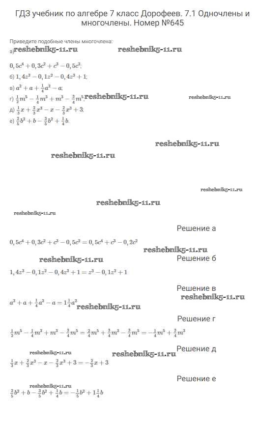 Готовая домашняя работа с ответами по Алгебре за 7 класс Дорофеев, Суворова, Бунимович Учебник Академический школьный учебник Просвещение 2020 ФГОС - Упражнения 645