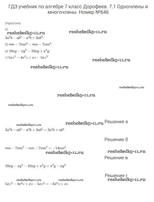 Готовая домашняя работа с ответами по Алгебре за 7 класс Дорофеев, Суворова, Бунимович Учебник Академический школьный учебник Просвещение 2020 ФГОС - Упражнения 646