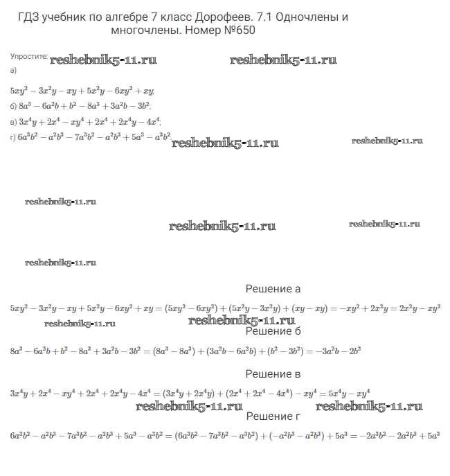 Готовая домашняя работа с ответами по Алгебре за 7 класс Дорофеев, Суворова, Бунимович Учебник Академический школьный учебник Просвещение 2020 ФГОС - Упражнения 650