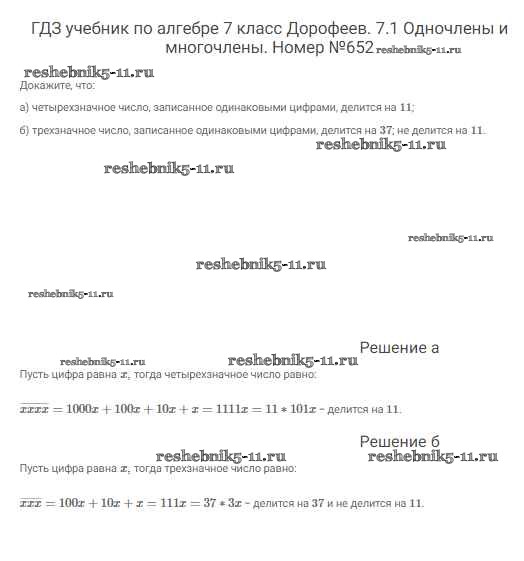 Готовая домашняя работа с ответами по Алгебре за 7 класс Дорофеев, Суворова, Бунимович Учебник Академический школьный учебник Просвещение 2020 ФГОС - Упражнения 652