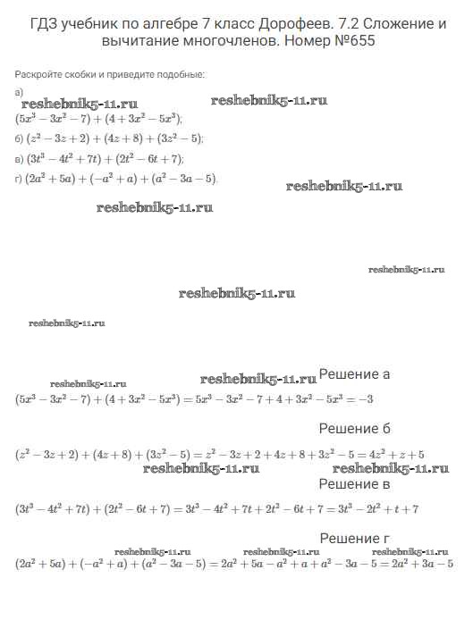 Готовая домашняя работа с ответами по Алгебре за 7 класс Дорофеев, Суворова, Бунимович Учебник Академический школьный учебник Просвещение 2020 ФГОС - Упражнения 655