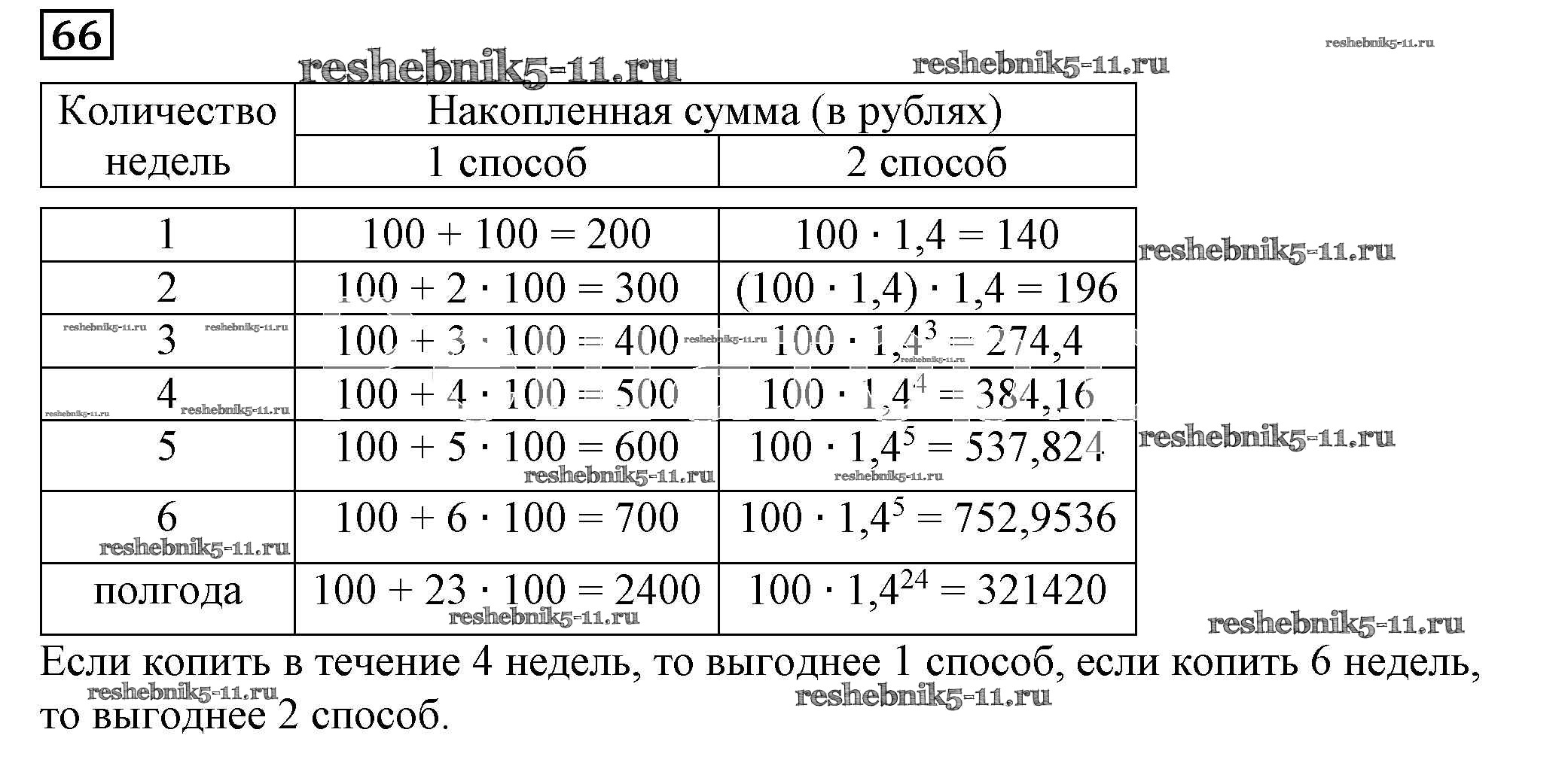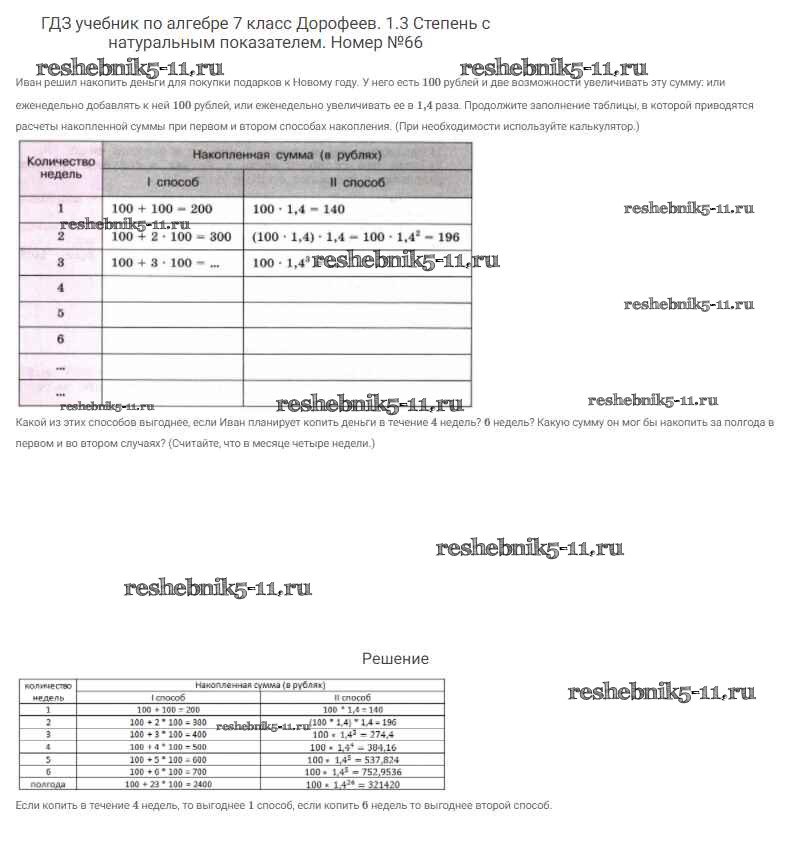 Готовая домашняя работа с ответами по Алгебре за 7 класс Дорофеев, Суворова, Бунимович Учебник Академический школьный учебник Просвещение 2020 ФГОС - Упражнения 66