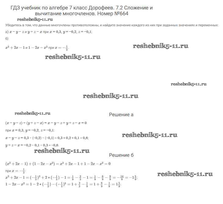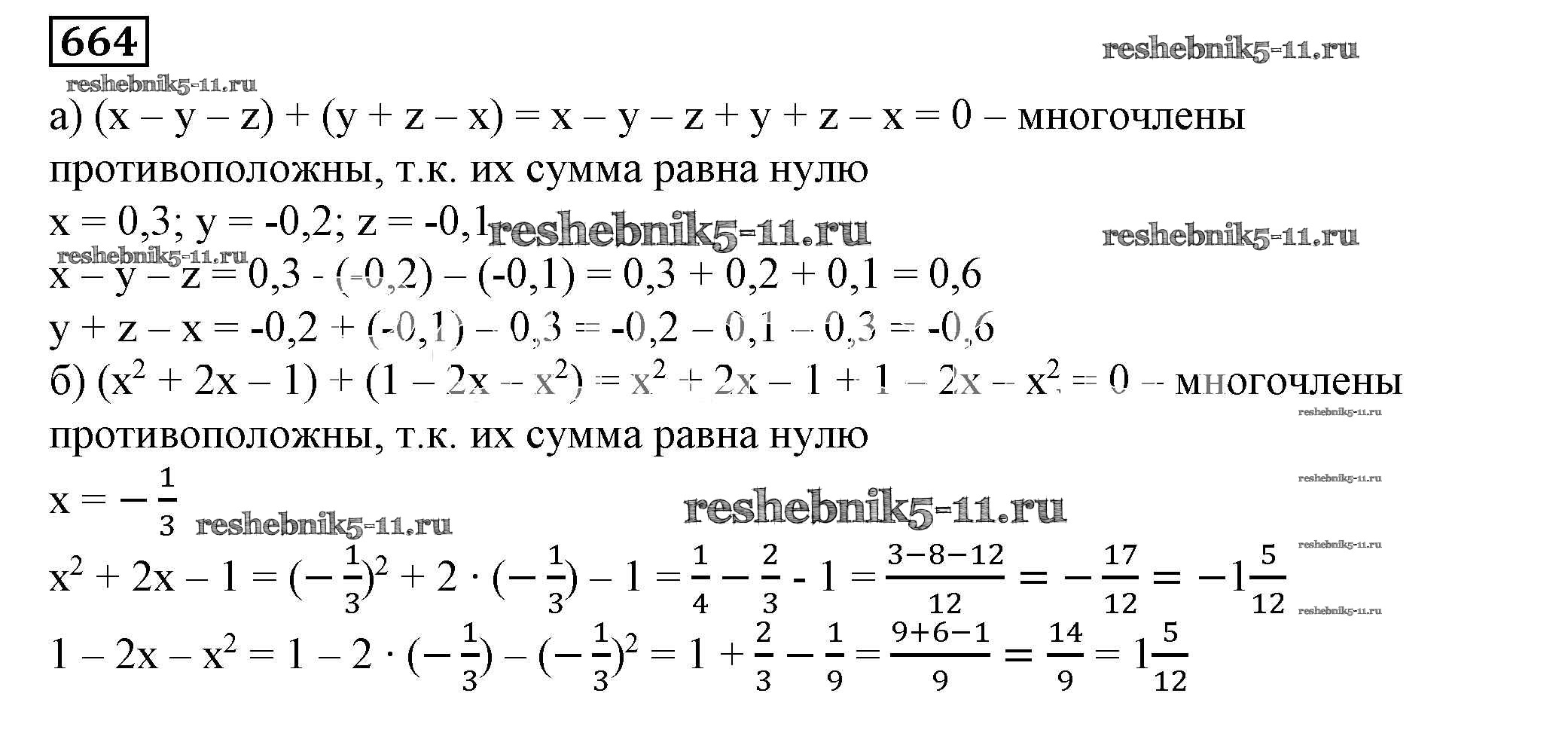 Готовая домашняя работа с ответами по Алгебре за 7 класс Дорофеев, Суворова, Бунимович Учебник Академический школьный учебник Просвещение 2020 ФГОС - Упражнения 664