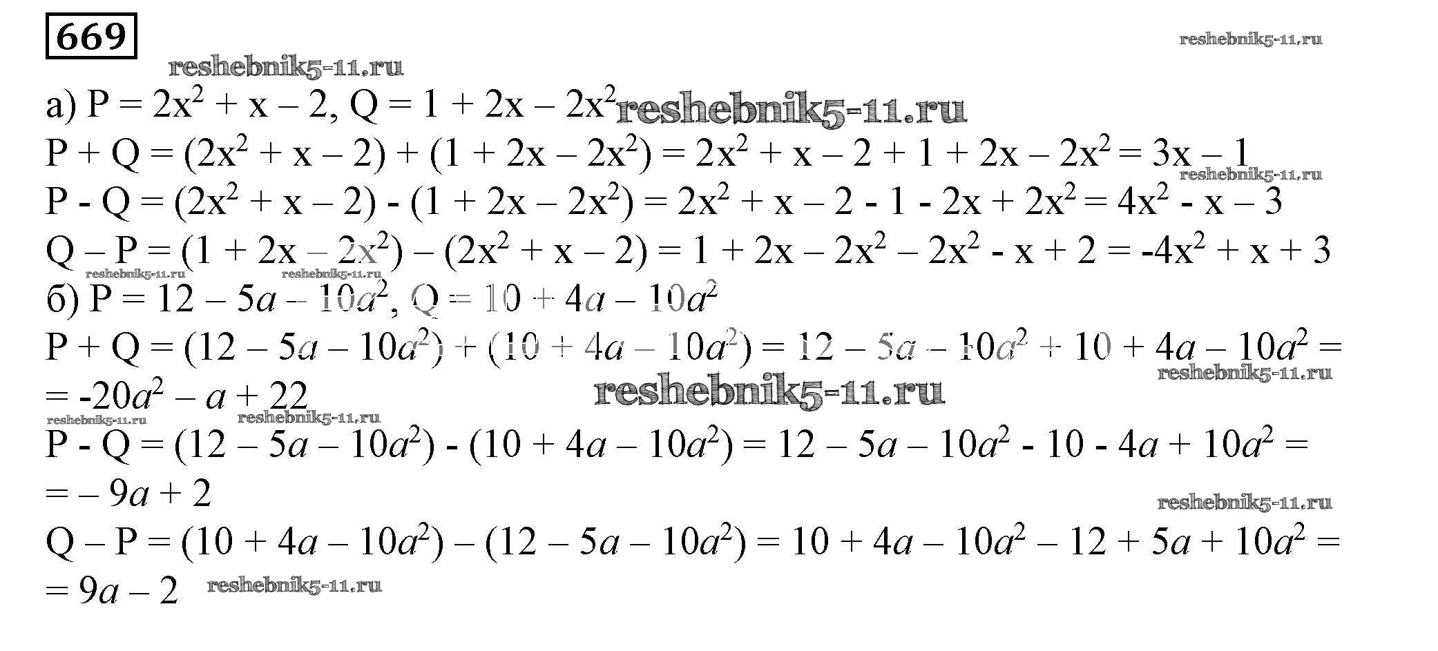 Готовая домашняя работа с ответами по Алгебре за 7 класс Дорофеев, Суворова, Бунимович Учебник Академический школьный учебник Просвещение 2020 ФГОС - Упражнения 669